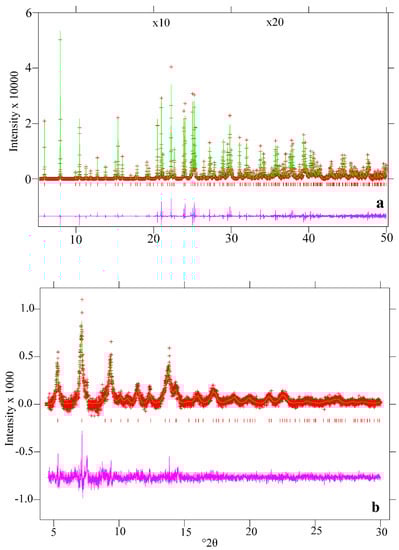 - Toby, B.H. Expgui, a graphical user interface for GSAS. J. Appl. Crystallogr. 2001, 34, 210–213. [Google Scholar] [CrossRef]