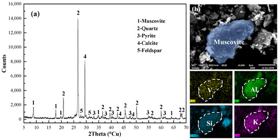 (a) XRD pattern of the black shale; (b) SEM-EDS patterns of the muscovite.