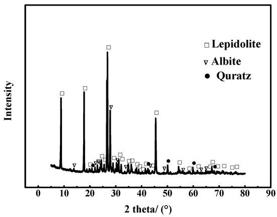 - Liu, J.; Yin, Z.; Li, X.; Hu, Q.; Liu, W. Recovery of valuable metals from lepidolite by atmosphere leaching and kinetics on dissolution of lithium. Trans. Nonferr. Metals Soc. China 2019, 29, 641–649. [Google Scholar] [CrossRef]