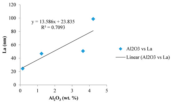 The La value (213.2 nm) is relatively small for flake type natural graphite. According to Badenhorst [93], XRD analysis on natural graphite samples has some limitations, and quantification results should be interpreted with caution. When applying the classification from Tagiri and Oba [67] (Figure 3), NG-SA is classified as graphite. The It ratio for the NG-SA sample as determined with Raman microspectroscopy also classifies the sample as crystallised graphite, according to Kouketsu et al. [68].
