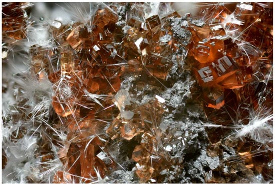 - Palache, C.; Berman, H.; Frondel, C. System of Mineralogy, 7th ed.; John, Wiley and Sons: New York, NY, USA, 1952. [Google Scholar]