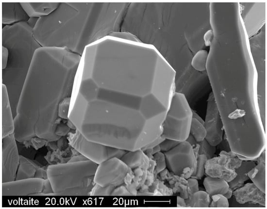 - Johan, Z.; Udubasa, G.; Zemann, J. “Monsmedite”, a discredited potassium thallium sulphate mineral from Baia Sprie and its identity with voltaite: The state of the art. N. Jahr. Miner. Abh. 2009, 186, 63–66. [Google Scholar] [CrossRef]