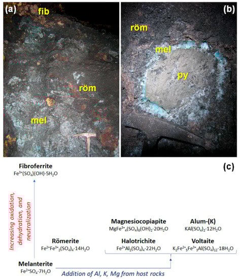 - Jerz, J.K.; Rimstidt, J.D. Efflorescent iron sulfate minerals: Paragenesis, relative stability, and environmental impact. Am. Miner. 2003, 88, 1919–1932. [Google Scholar] [CrossRef]