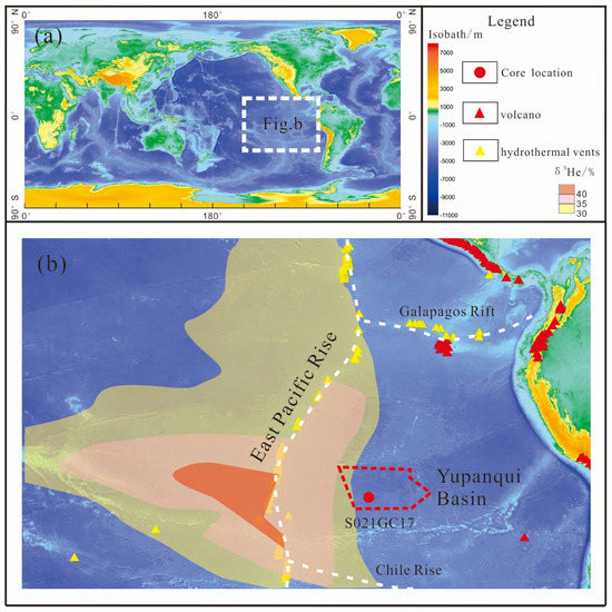 Most of the other REY-rich muds reported in the central North Pacific, the western Pacific, and the Indian Ocean appear to be unrelated to hydrothermal fluids [7,8,9]. However, the influence of hydrothermal fluids on the sediments in the Yupanqui Basin from the eastern South Pacific Ocean is significant.