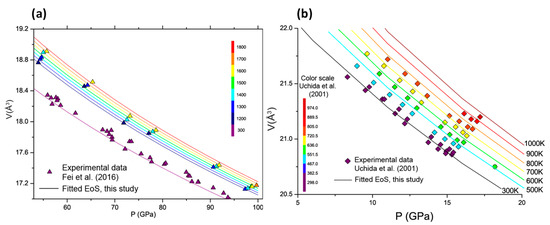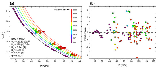 - Dorogokupets, P.I. P–V–T equations of state of MgO and thermodynamics. Phys. Chem. Miner. 2010, 37, 677–684. [Google Scholar] [CrossRef]