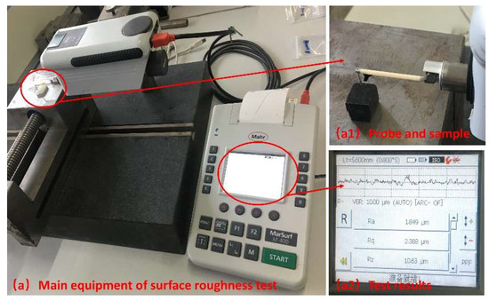 Figure 2. Surface roughness measuring instrument (MarSurf M400) ((a) Main eauipment of surface roughness measurement; (a1) Probe and sample; (a2) Test results).