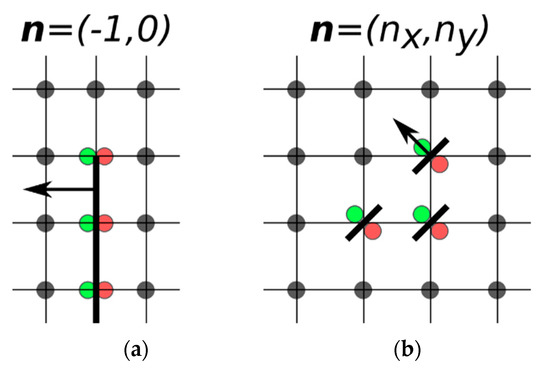 when the normal is directed to the right. Similarly, we do this when calculating along a different spatial axis. Then, at the border, the boundary condition can be performed according to Formula (4).