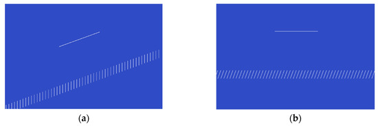The schematic representation of the models with the cluster of parallel fractures. Panel (a) shows a model with the inclined receivers under 20°, and a cluster of fractures parallel to the boundaries of the grid cells. Panel (b) presents the model with the cluster of the inclined fractures under 20° and the receivers parallel to the boundaries of the grid cells.