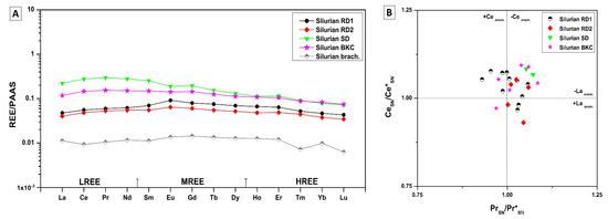 106. Banner, J.L.; Hanson, G.N.; Meyers, W.J. Rare earth element and Nd isotopic variations in regionally extensive dolomites from the Burlington-keokuk formation (Mississippian): Implications for REE mobility during carbonate diagenesis. J. Sediment. Res. 1988, 58, 415–432. [Google Scholar]
