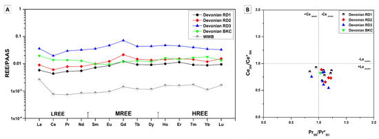 113. Nothdurft, L.D.; Webb, G.E.; Kamber, B.S. Rare earth element geochemistry of Late Devonian reefal carbonates, Canning Basin, Western Australia: Confirmation of a seawater REE proxy in ancient limestones. Geochim. Cosmochim. Acta 2004, 68, 263–283. [Google Scholar] [CrossRef]