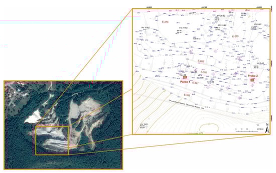 Localization of large-scale samples Probe 1 and Probe 2 in the perlite quarry Lehôtka pod Brehmi.