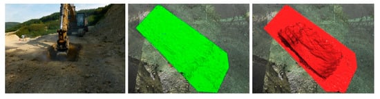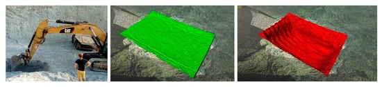 Another aspect can be a method of creating a reference model of the original state. In our case, the original surface measured in situ at the quarry was planar, i.e., close to the truth, while, for example, in the work by Kociuba et al. [5], it was approximated according to the surrounding terrain.