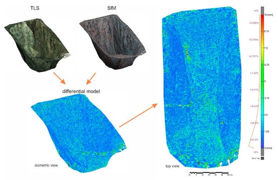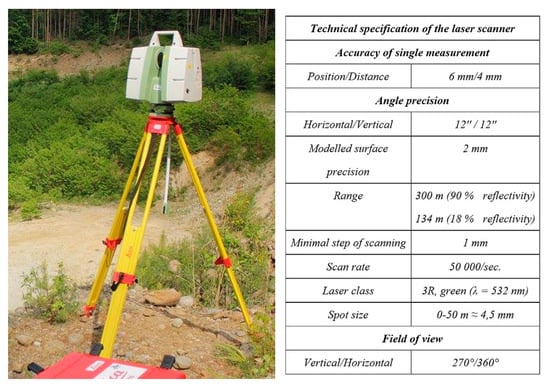 Additionally, there are also several papers dealing with the processing of data measured and obtained by TLS and digital photogrammetry (point clouds). For example, Rusnák et al. provided a template for the application of UAV in mapping river landscape as a research tool for this type of landscape [22]; the limits and advantages of photomodeling compared to structured light 3D scanning systems were demonstrated by Catalucci et al. [23]; Fraštia et al. provided a comprehensive and accurate macro-view of the morphology of inaccessible rock towers and blocks using LiDAR, which could not be obtained from field survey [24] and other studies.