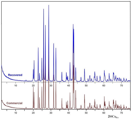XRD of recovered and commercial BaSO4.