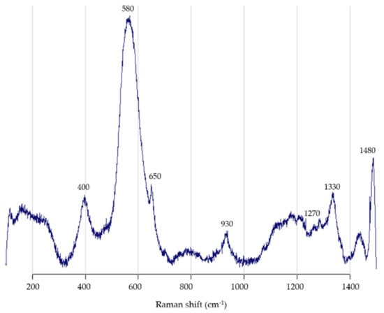 - Bouchard, M.; Smith, D.C. Catalogue of 45 reference Raman spectra of minerals concerning research in art history or archaeology, especially on corroded metals and coloured glass. Spectrochim. Acta–Part A Mol. Biomol. Spectrosc. 2003, 59, 2247–2266. [Google Scholar] [CrossRef]