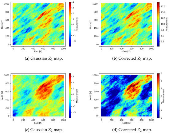 Maps of and with Gaussian sequential simulation and corrective affine transformation.