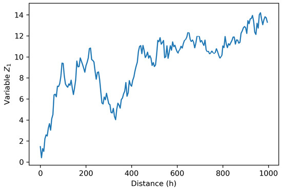 With the aim of analyzing the behavior of the primary variable, a diagonal cut is performed from southwest to northeast on the map of this variable (45° azimuth), coinciding with the direction of anisotropy. We observe the existence of local stationarity between 500 and 900 meters approximately, see Figure 4. Armstrong [31] states that this assumption of quasi-stationarity is essential between the homogeneity scale of the phenomenon and the sampling density.