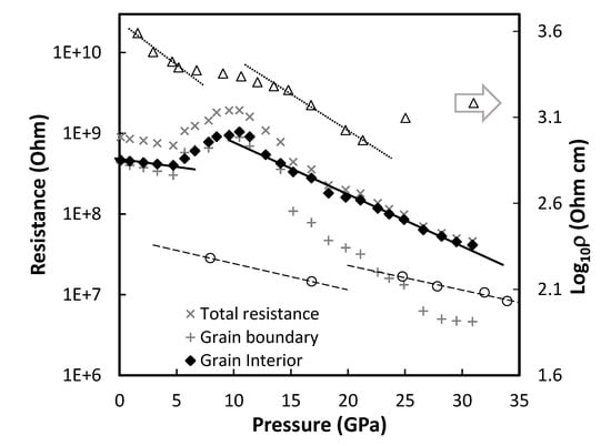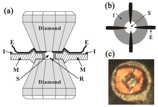- Mao, H.K.; Xu, J.; Bell, P.M. Calibration of the Ruby Pressure Gauge to 800 Kbar under Quasi-Hydrostatic Conditions. J. Geophys. Res. 1986, 91, 4673–4676. [Google Scholar] [CrossRef]