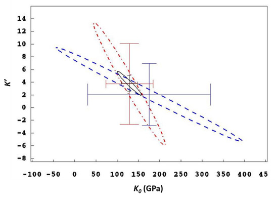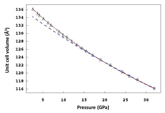 - Angel, R.J. Equations of State. In High-Temperature and High-Pressure Crystal Chemistry; Hazen, R.M., Downs, R.T., Eds.; Mineralogical Society of America: Chantilly, VA, USA, 2000; Volume 41, pp. 35–60. [Google Scholar]