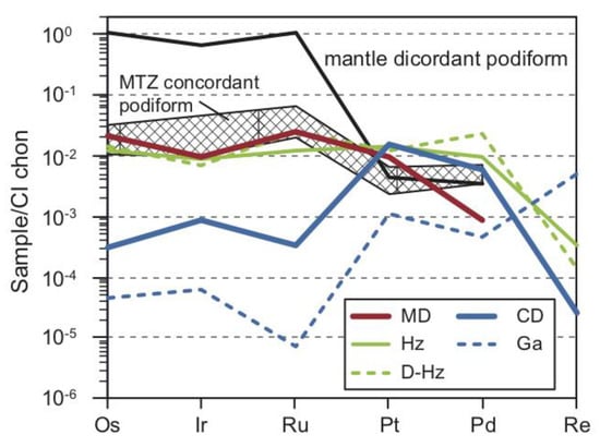 - Barnes, S.-J.; Naldrett, A.J.; Gorton, M.P. The origin of the fractionation of platinum-group elements in terrestrial magmas. Chem. Geol. 1985, 53, 303–323. [Google Scholar] [CrossRef]