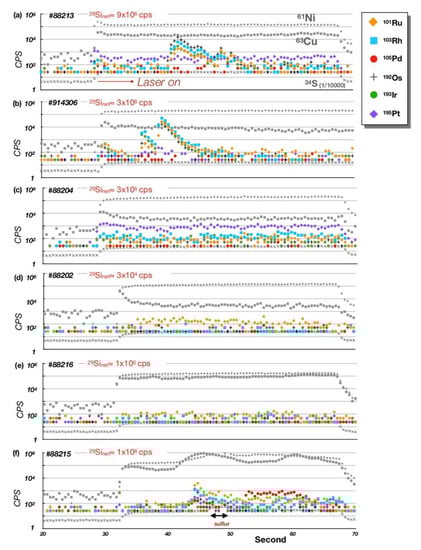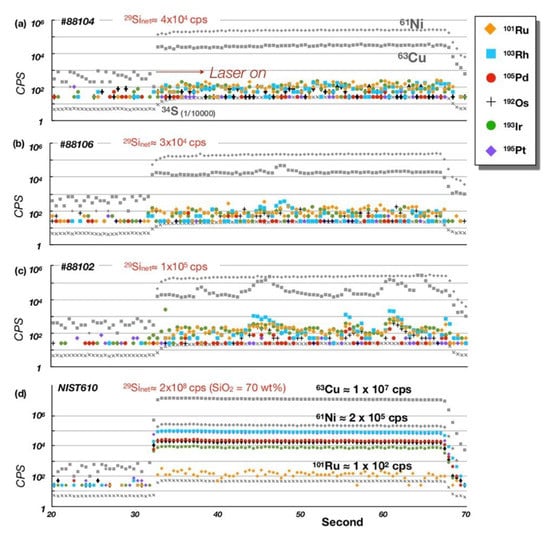 - Morishita, T.; Ishida, Y.; Arai, S. Simultaneous determination of multiple trace element compositions in thin (<30 µm) layers of BCR-2G by 193 nm ArF excimer laser ablation-ICP-MS: Implications for matrix effect and elemental fractionation on quantitative analysis. Geochem. J. 2005, 39, 327–340. [Google Scholar] [CrossRef]