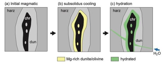 - Matveev, S.; Ballhaus, C. Role of water in the origin of podiform chromitite deposits. Earth Planet. Sci. Lett. 2002, 203, 235–243. [Google Scholar] [CrossRef]