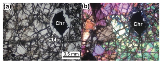 - Arai, S.; Akizawa, N. Precipitation and dissolution of chromite by hydrothermal solutions in the Oman ophiolite: New behavior of Cr and chromite. Am. Mineral. 2014, 99, 28–34. [Google Scholar] [CrossRef]
