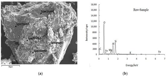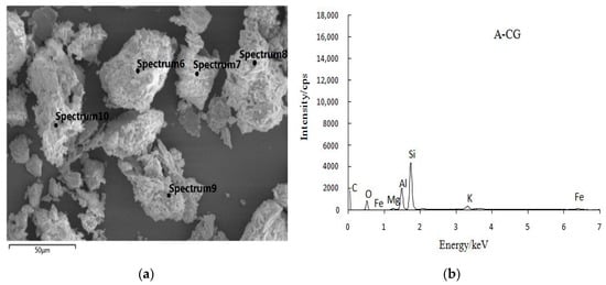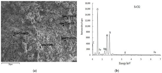 SEM and EDS spectrum of Raw-CG. (a) SEM Spectrum of Raw-CG; (b) EDS Spectrum of Raw-CG. Spots Spectrum: scanning spots of EDS.