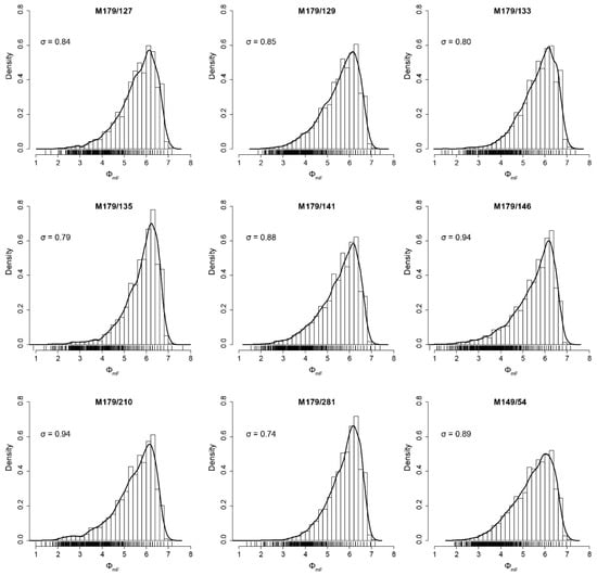 GSD density histograms of the inclusions minimum Feret’s diameter converted to the phi scale (ϕmF) for the representative amphorae discovered at Himera and Jerba (M149/54). Standard deviation (σ) is also reported.