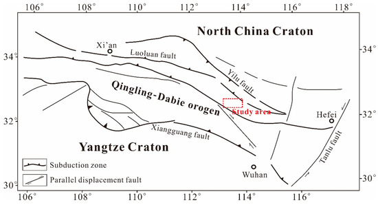 Location and geological map of the Qinling-Dabie orogenic belt (modified from [66]).