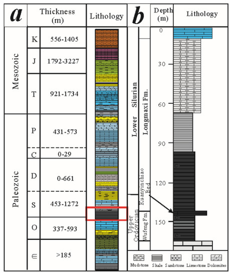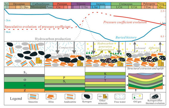 The black shales from the Wufeng Group (O3w) and the Longmaxi Group (S1l) are considered to be the most developed shale strata in China [1,2,3,4,5]. It has been proven by reservoir exploration and development that reservoir overpressure is an important indicator dominating the shale gas enrichment and production in southern China [6,7,8]. Thus, the genetic mechanism and evolution process of the overpressure in black shale provides a geological basis for exploration and development strategies of shale gas.