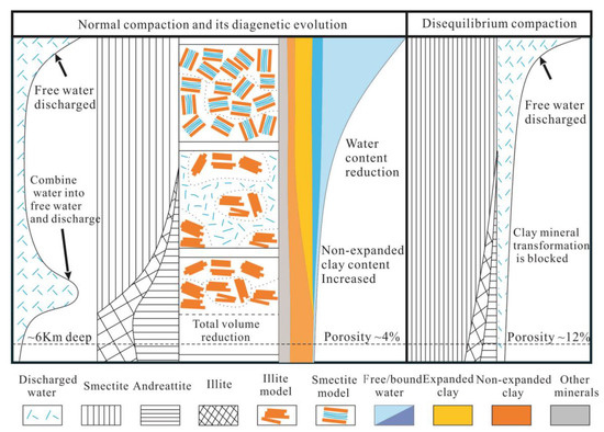 Figure 11. Clay mineral transformation under normal compaction and disequilibrium compaction conditions.