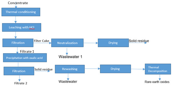 The obtained results have confirmed the loss of rare earth elements in wastewater. Due to this fact, the research strategy was optimized, as shown in Figure 7.