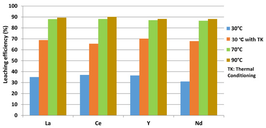 Leaching efficiency of La, Ce, Y and Nd.