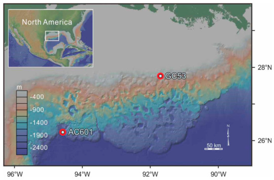 - Brooks, J.M.; Fisher, C.; Roberts, H.; Carney, B.; Macdonald, I.; Cordes, E.; Joye, S.; Goehring, L.; Bernard, B.; Wolff, G. Investigations of Chemosynthetic Communities on the Lower Continental Slope of the Gulf of Mexico Volume I: Final Report; U.S. Department of the Interior, Bureau of Ocean Energy Management, Gulf of Mexico OCS Region: New Orleans, LA, USA, 2014. [Google Scholar]
