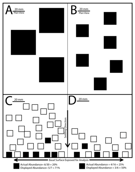 Several reporting metrics can be generated by automated mineralogical software packages, including volume percentage (vol. %), weight percentage (wt. %), grain count, and area percentage. The calculation of 3D vol. % values from a 2D surface requires the generalization of grain volume as a sphere or ellipse using the length of the long axis present on the polished grain surface [43]. This is a powerful tool for many applications of automated mineralogy as it allows a user to establish a “grade” for a sample, when mineral chemistry data is combined with the resultant volume from MLA.
