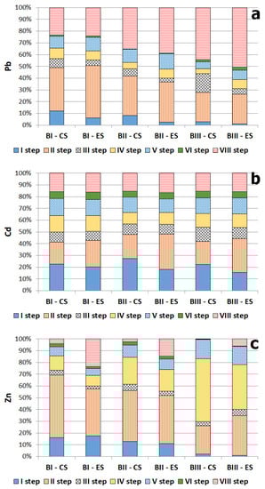 3.4. Solid-Association of Zn, Cd and Pb
