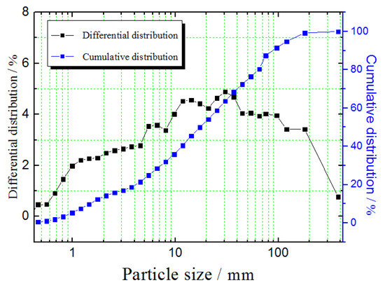 Unclassified flotation tailings are obtained from a vanadium processing plant in an iron mine. The tailings pH is neutral to alkaline, with a low bulk density and high porosity. The specific gravity of the tailings is 2.966 t/m3, and the bulk density is 1.438 t/m3. The tailings particle size distribution is shown in Figure 1. With D50 = 17.20 μm, D10 = 1.56 μm, D90 = 94.34 μm, the particles smaller than 74 μm account for 87.4% of the total weight, and the particles finer than 37 μm account for 68.36% of the total weight.