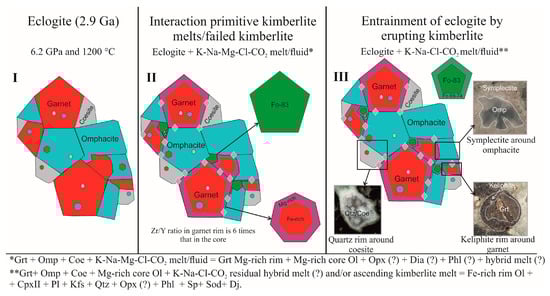 - Dawson, J.B.; Harley, S.L. Some post-equilibrium reactions in kimberlite-derived eclogites Paper A-00081. Lithos 2009, 112, 1025–1031. [Google Scholar] [CrossRef]
