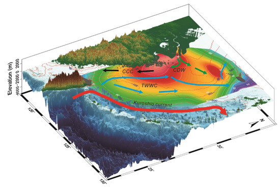 - Isobe, A. Recent advances in ocean-circulation research on the Yellow Sea and East China Sea shelves. J. Oceanogr. 2008, 64, 569–584. [Google Scholar] [CrossRef]