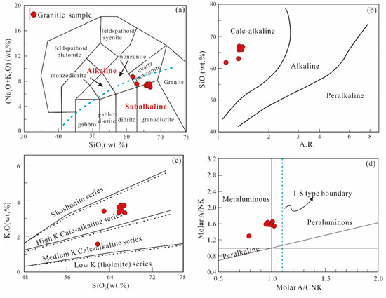 - Wright, J.B. A simple alkalinity ratio and its application to questions of non-orogenic granite genesis. Geol. Mag. 1969, 106, 370–384. [Google Scholar] [CrossRef]