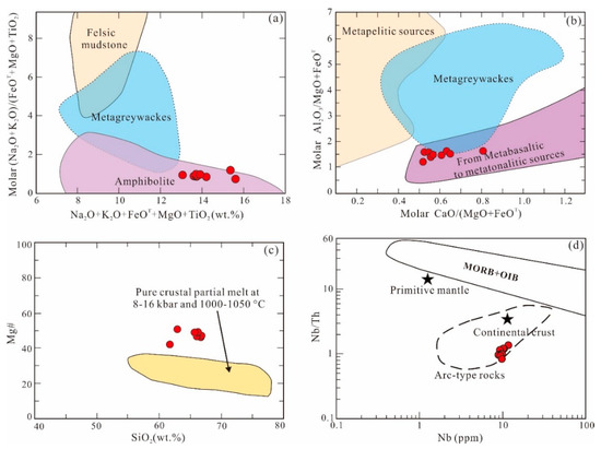 - Moyen, J.F. High Sr/Y and La/Yb ratios: The meaning of the adakitic signature. Lithos 2009, 112, 556–574. [Google Scholar] [CrossRef]