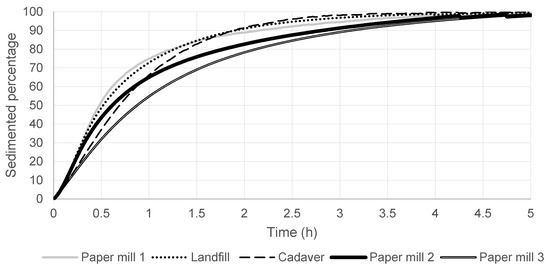 | Settled after 1 h (%) b | 74.9 | 72.8 | 66.2 | 65.0 | 54.8 |
