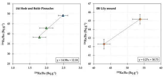 - Ditchburn, R.G.; de Ronde, C.E.J. Evidence for Remobilization of Barite Affecting Radiometric Dating Using 228Ra, 228Th, and 226Ra/Ba Values: Implications for the Evolution of Sea-Floor Volcanogenic Massive Sulfides. Econ. Geol. 2017, 112, 1231–1245. [Google Scholar] [CrossRef]