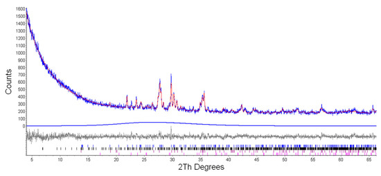 - Gualtieri, A.F.; Gatta, G.D.; Arletti, R.; Artioli, G.; Ballirano, P.; Cruciani, G.; Guagliardi, A.; Malferrari, D.; Masciocchi, N.; Scardi, P. Quantitative phase analysis using the Rietveld method: towards a procedure for checking the reliability and quality of the results. Period. Mineral. 2019, 88, 147–151. [Google Scholar]