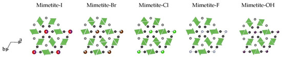 The following are available online at https://www.mdpi.com/2075-163X/10/6/494/s1, File S1: Crystallographic Information File of mimetite-F, File S2: Crystallographic Information File of mimetite-Cl, File S3: Crystallographic Information File of mimetite-Br, File S4: Crystallographic Information File of mimetite-I, File S5: Crystallographic Information File of mimetite-OH.