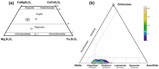 (a) pyroxene chemistry of the orthoamphibolites from the Aravalli area, plot of the EPMA data in the pyroxene classification diagram after [20], (b) plagioclase chemistry of the orthoamphibolites from the Aravalli area, plot of the EMPA data in the feldspar classification diagram.