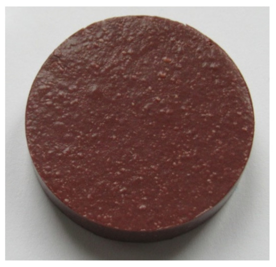 The addition of coloring oxides (I K and III K samples) resulted in the decay of microcline reflections and the appearance of small peaks of mullite (d—5.37, 3.40, 3.39 and 2.29 Å) and of hematite (d—2.69, 2.51, 2.20 and 1.68 Å, albeit of lower intensity than in the X-ray pattern of corresponding sodium samples), as well as raised hump of amorphous phase. The reasons for these differences were similar to the sodium-type material (divalent iron acting as a flux); however, the amount of amorphous phase was notably lower. The peaks of mullite are weaker in the X-ray diffraction pattern of the potassium samples after firing due to the fact that their thermal decomposition takes place at higher temperatures than alkaline feldspars rich in Na2O. When it comes to sodium feldspars, they turn into the liquid phase faster and secondary mullite crystalizes earlier and more easily. Melting at lower temperature resulted in numerous bubbles that appeared on the surface of the I Na sample (Figure 4), while the surface of the I K pellet was almost free of such irregularities. The peaks of rutile or other titanium phases were not identified. This was probably due to their concentration below the detection limit of the XRD method.
