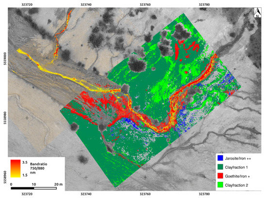 - Jackisch, R.; Lorenz, S.; Zimmermann, R.; Möckel, R.; Gloaguen, R. Drone-borne hyperspectral monitoring of acid mine drainage: An example from the Sokolov Lignite District. Remote Sens. 2018, 10, 385. [Google Scholar] [CrossRef]