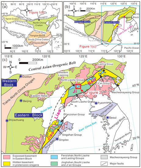 (a) Major structural distribution map of China. (b) Geological map of the North China Craton, and (c) the Paleoproterozoic Jiao-Liao-Ji Belt (after Zhao et al. [3]).